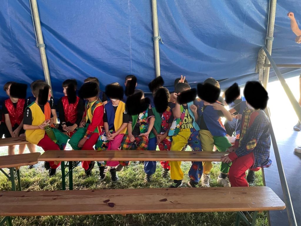 Hinter der Bühne herrschte geschäftiges Treiben: Die Kinder wurden geschminkt und eingekleidet, die Kostüme zurechtgezupft, letzte Tipps gegeben und viel aufgeregt gelacht. Die Maske verwandelte die Kinder endgültig in Zirkusstars – mit Glitzer, Schminke, roten Nasen oder bunten Haaren. Danach nahmen sie voller Stolz auf der Künstlertribüne Platz und warteten gespannt auf ihren Einsatz.