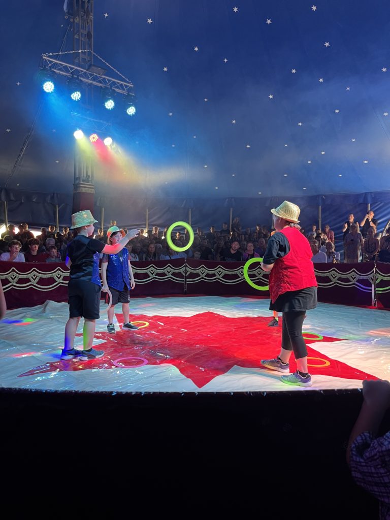 Nach einer kurzen Pause zu Hause, in der sich alle noch einmal stärken konnten, wurde es am Nachmittag richtig spannend: Um 17 Uhr trafen die jungen Artistinnen und Artisten wieder im Zirkuszelt ein – diesmal für ihren ersten großen Auftritt vor Publikum.