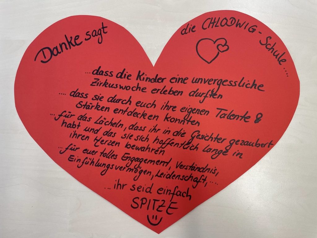 Wir möchten von Herzen Danke sagen – allen, die dieses Projekt möglich gemacht haben: dem Zirkusteam, den Lehrkräften, den Betreuerinnen und Betreuern, der Schulleitung, den Eltern und natürlich den vielen freiwilligen Helferinnen und Helfern.